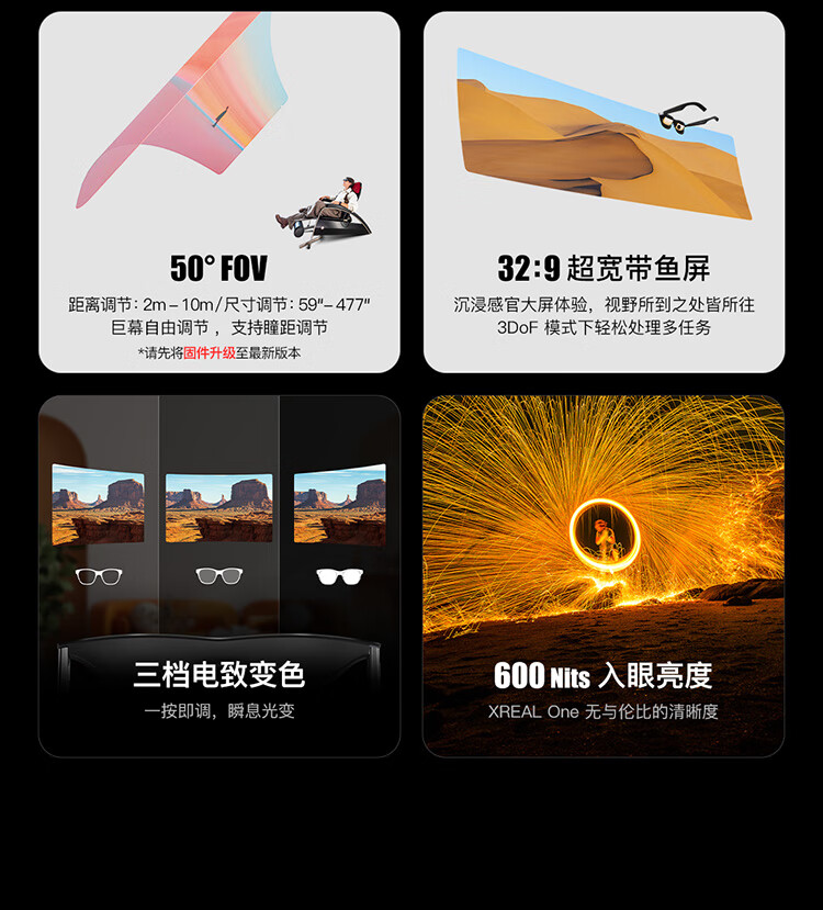XREAL One 智能AR眼镜 原生3DoF悬停 自研空间计算芯片 50°FOV 直连苹果16系列 非VRAI眼镜